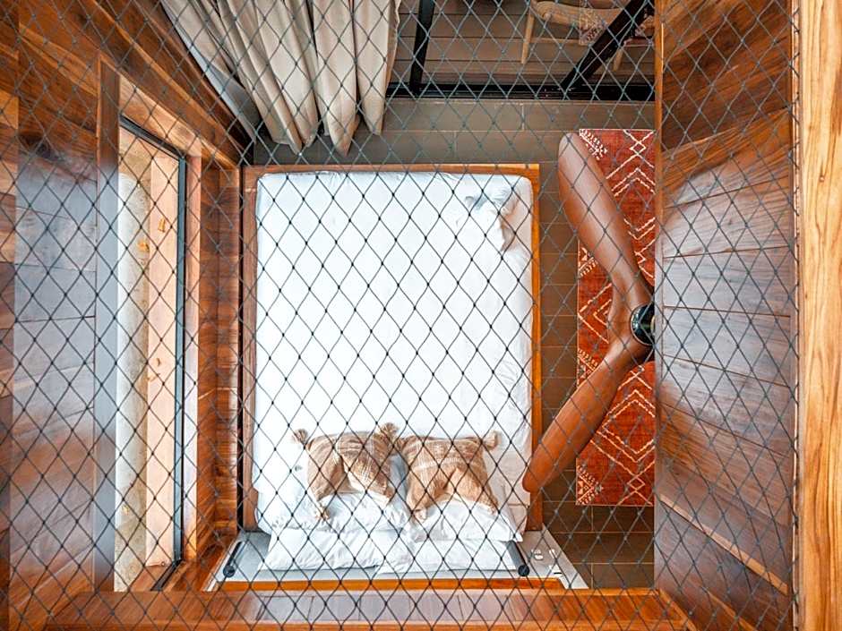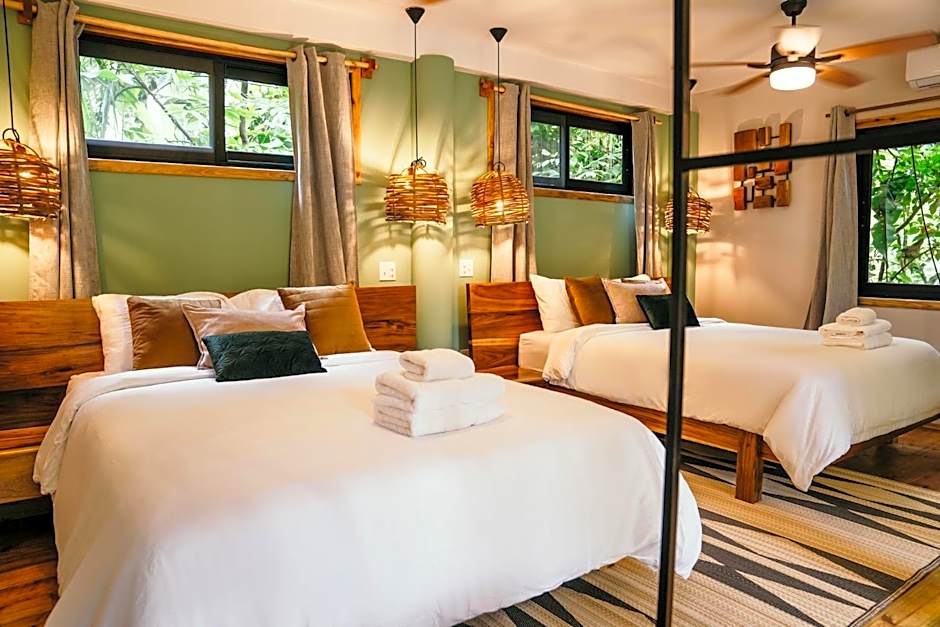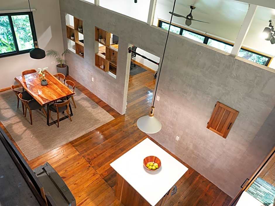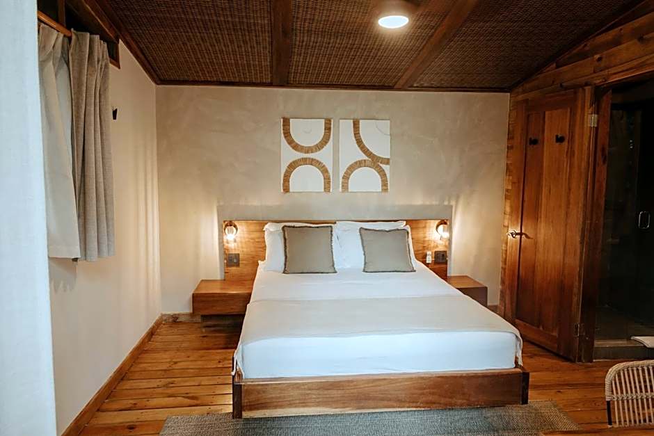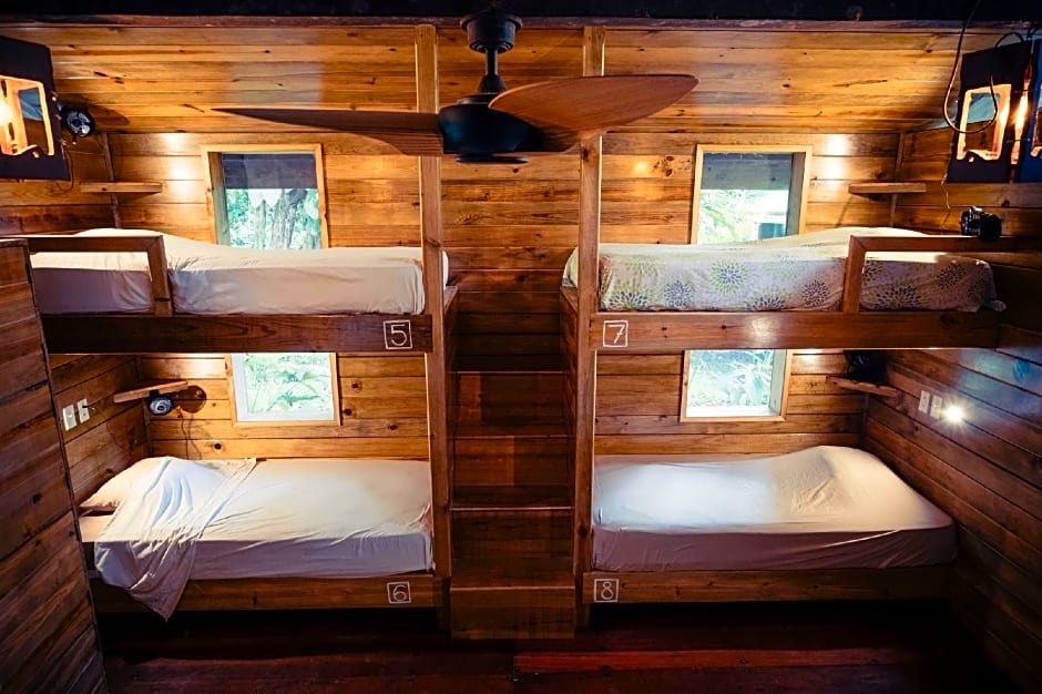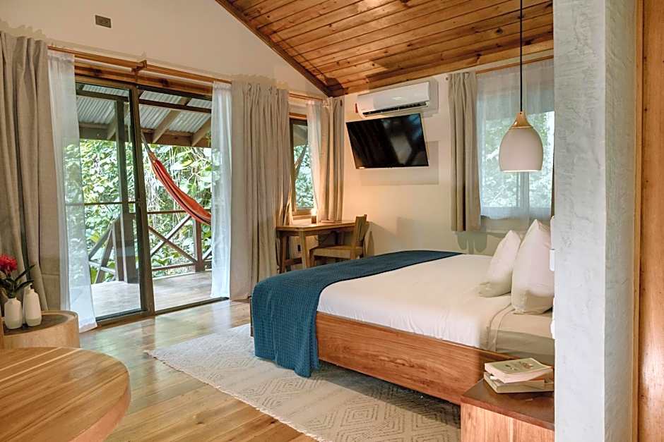 Unique open-jungle cabin with two floors and outdoor bathroom. Raised above the rest of the property, the second floor offers a unique open air experience of the rainforest, while allowing the ocean breeze and sounds to soothe you to sleep.