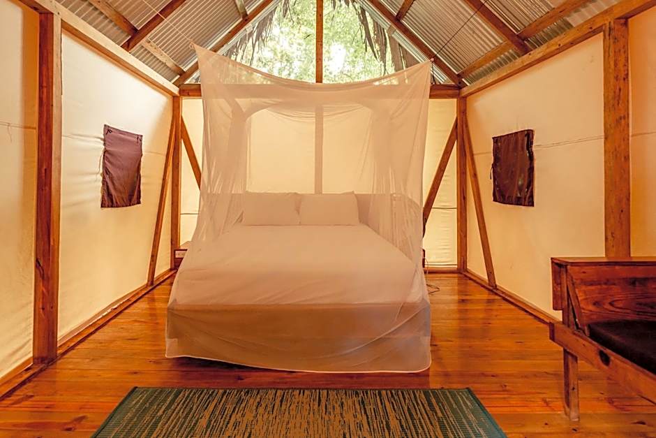 Jungle glamping experience. Fall asleep to jungle sounds in our unique rainforest tents. All furniture is custom designed and hand made to fit the tent, including a large, lockable truck for valuables. Each tent has a private outdoor seating area